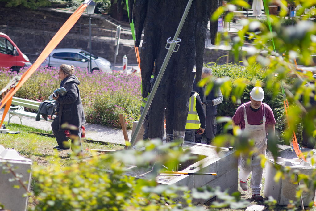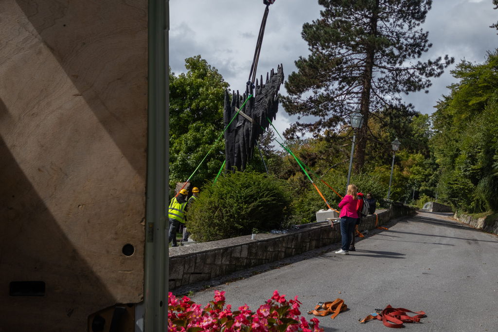 Spomenik, ki je bil postavljen leta 1962, je namreč dodobra načel zob časa, zaradi česar se je v lanskem letu začel nevarno nagibati, zato ga je bilo potrebno demontirati, razrezati na več delov in odpeljati na restavriranje, obenem pa je bilo potrebno temeljito prenoviti in utrditi tudi njegov podstavek.