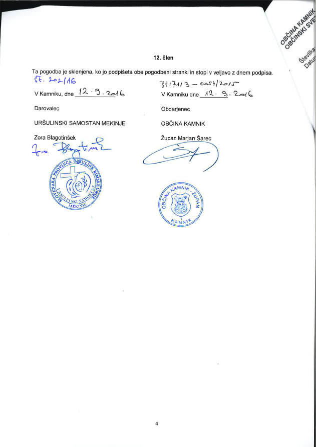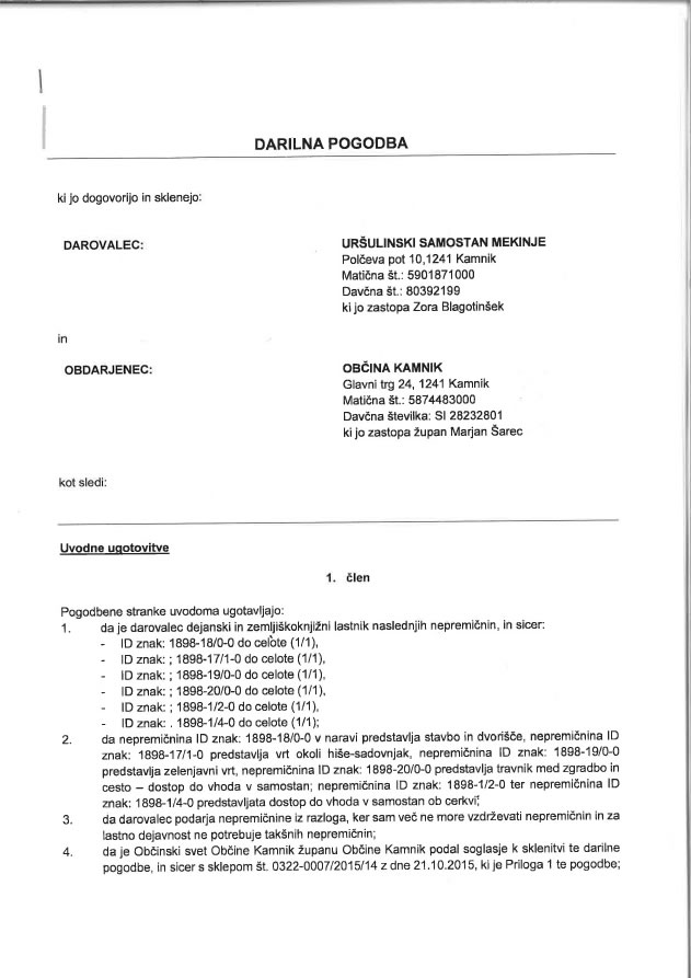 Ob informaciji o podpisu darilne pogodbe vsebina le-te ni bila razkrita, zato smo Občino Kamnik zaprosili za njeno vsebino, ki so nam jo z Občine Kamnik, brez prilog, ki so sestavni del pogodbe, posredovali danes in si jo lahko ogledate v nadaljevanju.