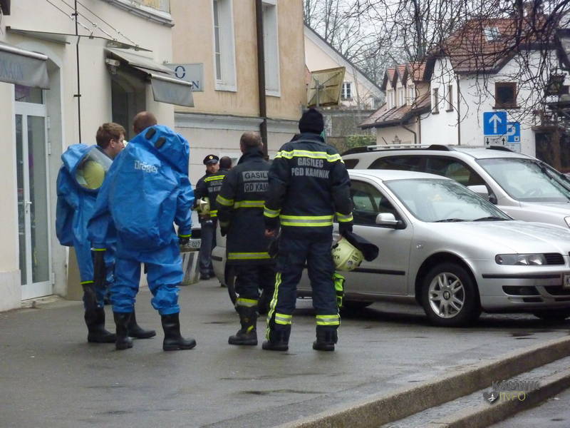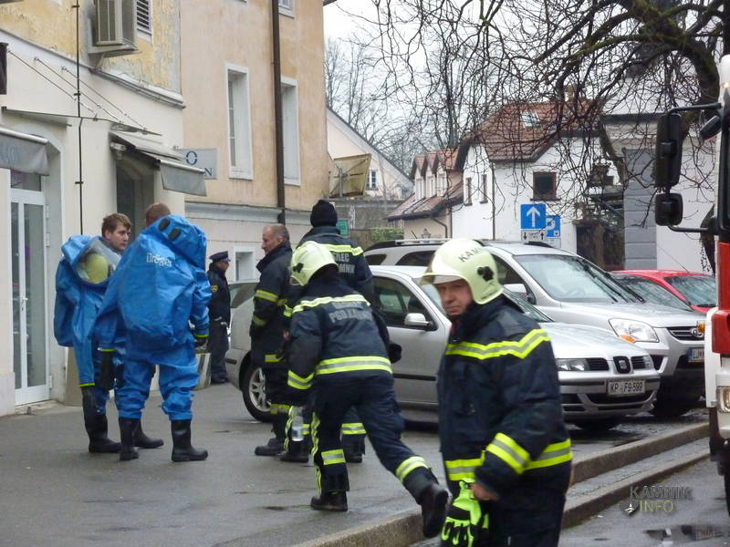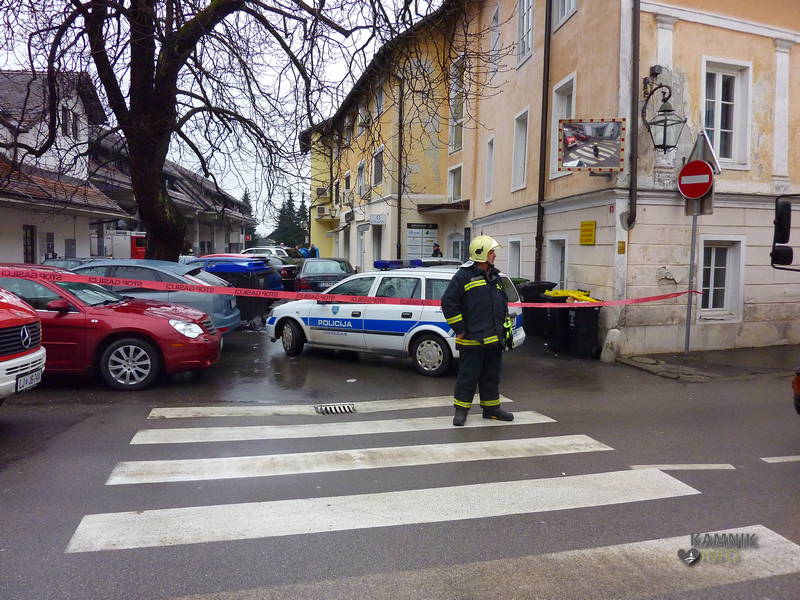 V samem centru Kamnika je v dopoldanskih urah vladalo domala izredno stanje, saj je bila v teku intervencija kamniških policistov in gasilcev, ki so, okrog 8:30, zavarovali območje okrog stavbe v katerem ima svoje poslovne prostore kamniški izvršitelj Marjan Hojs. – Prvi testi naj bi pokazali, da ni šlo za snov, ki bi bila nevarna za zdravje in življenje ljudi in živali.