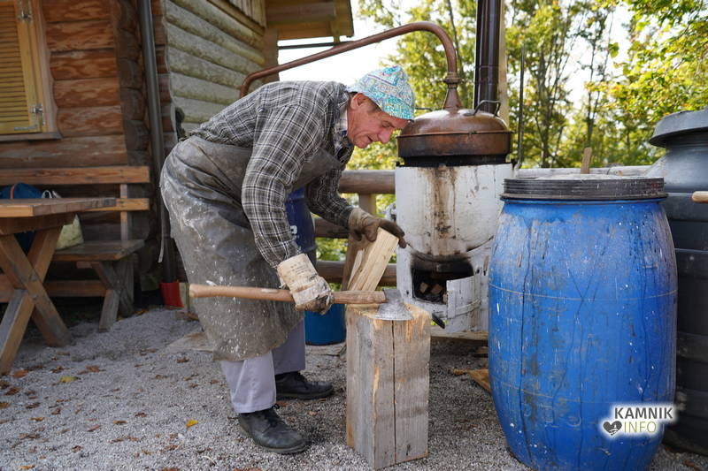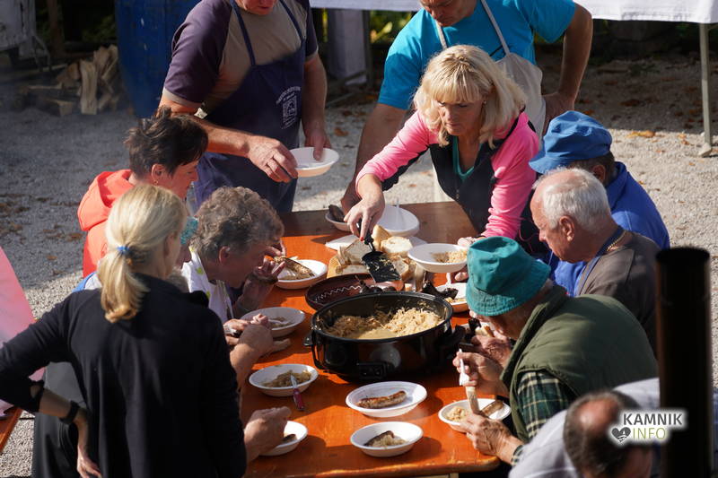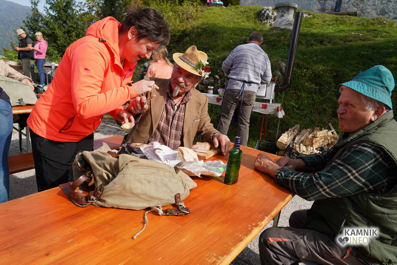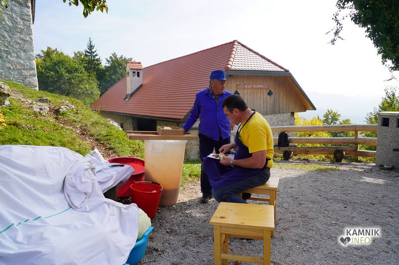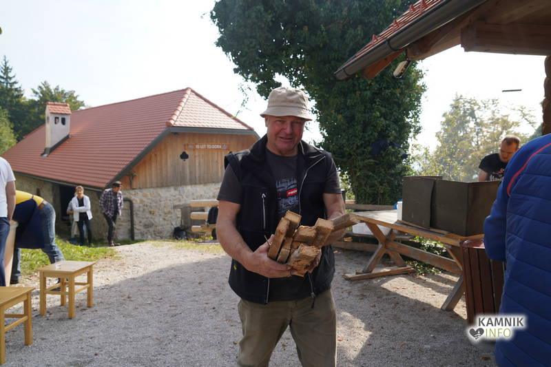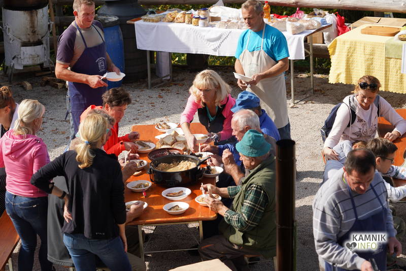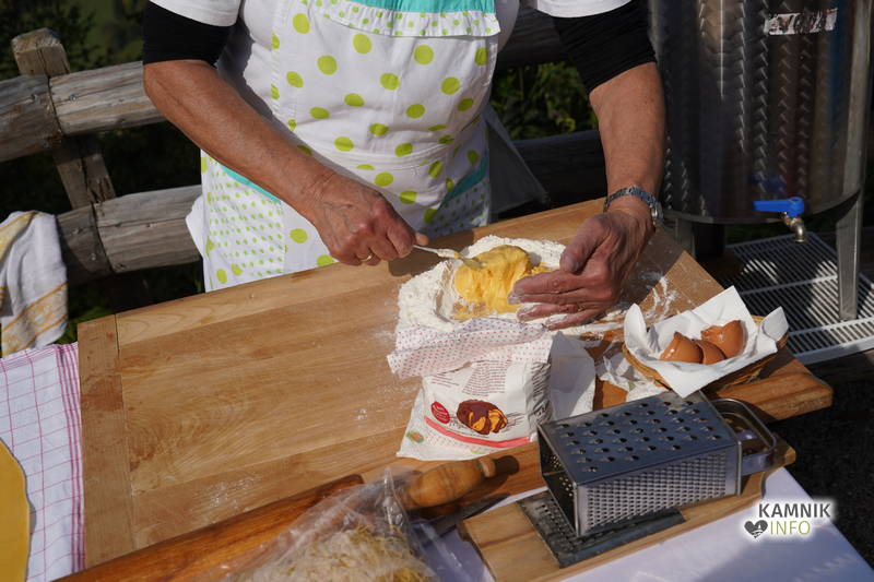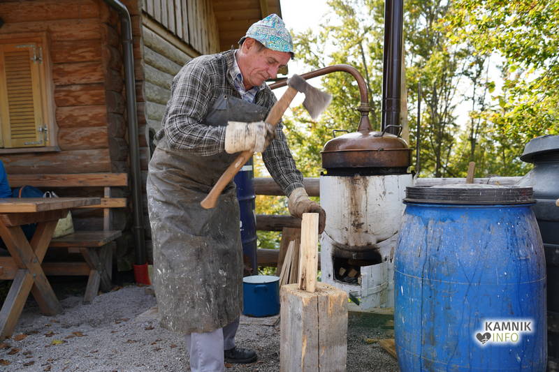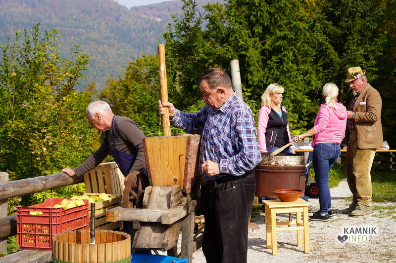 Sem ter tja sta zapeli sekira in žaga, pod prsti pridnih rok je šumelo ličkanje, na dobro nabrušenem ribežnu so se velike glave zelja spreminjale v rezance, skorajda tako tanki in okusni, kot tisti, ki so iz moke in jajc nastajali pod spretnimi prsti gospodinje, sem ter tja se je zaslišalo protestno blejanje ovce z novo frizuro, iz kotla je čisto počasi curljalo in dišalo žganje, marsikatera razstavljena domača dobrota, pa se je iz stojnične mize preselila v torbo in nahrbtnik tega ali onega obiskovalca ter odpotovala v dolino.