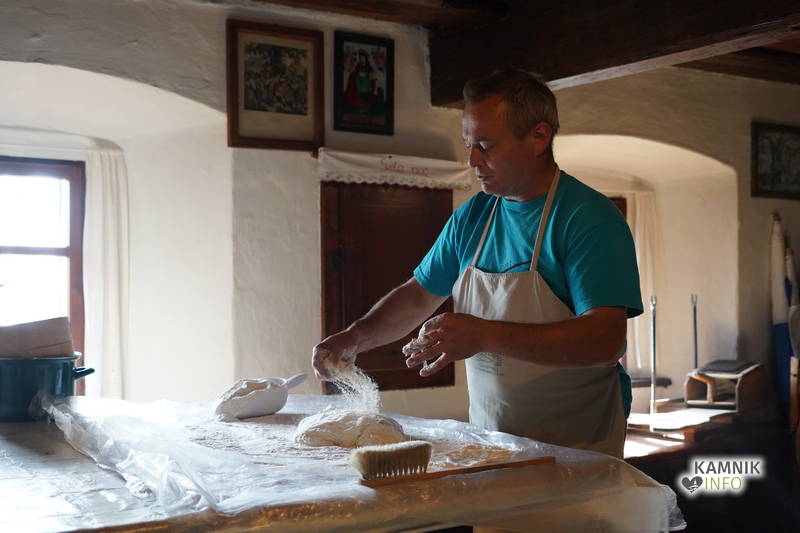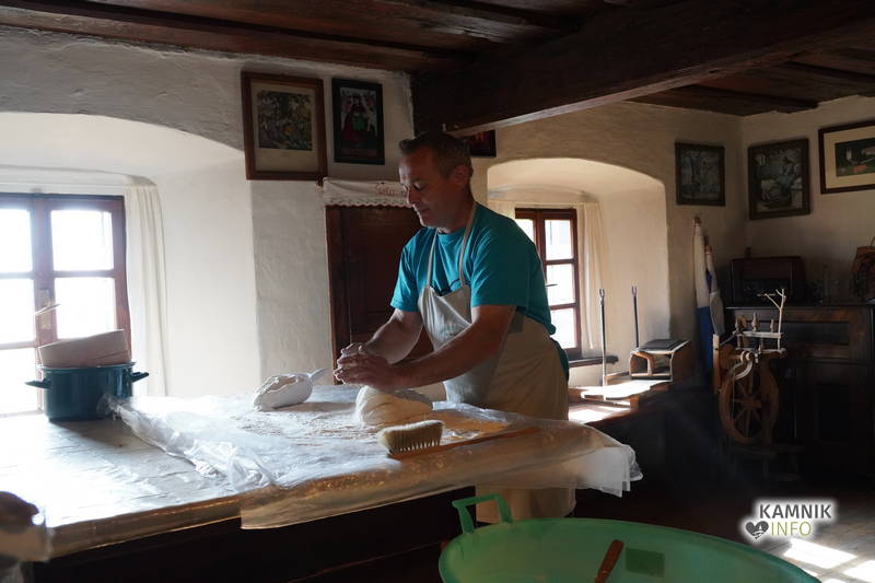 V topli hiši mežnarije je bilo lahko skorajda slišati intimno vzhajanje testa, ki se je pod spretnimi rokami prelevilo v hlebce, ki so odromali v ta namen zakurjeno peč iz katere so se vrnili kot slasten in omamno dišeč kruh.