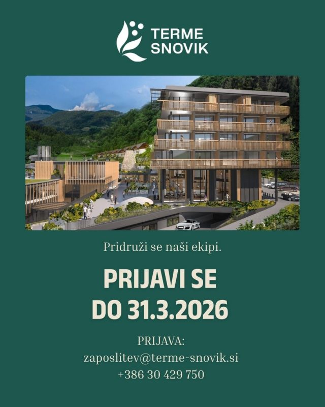 Prijave sprejemamo do 31. marca 2026 tudi preko emaila na zaposlitev@terme-snovik.si, za vprašanja pa smo dosegljivi na 030 429 750.