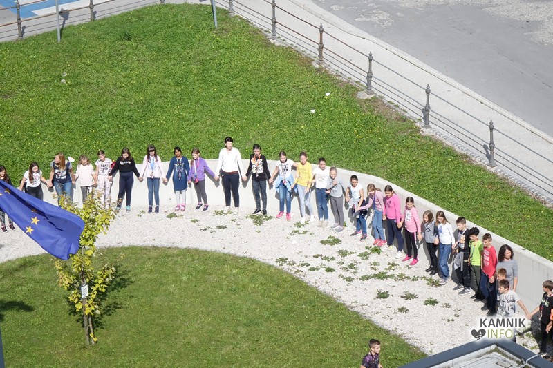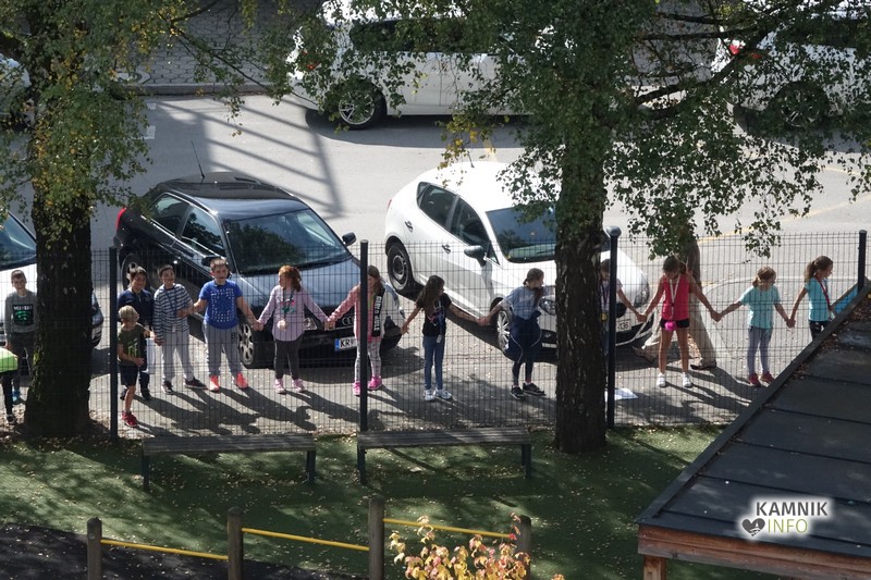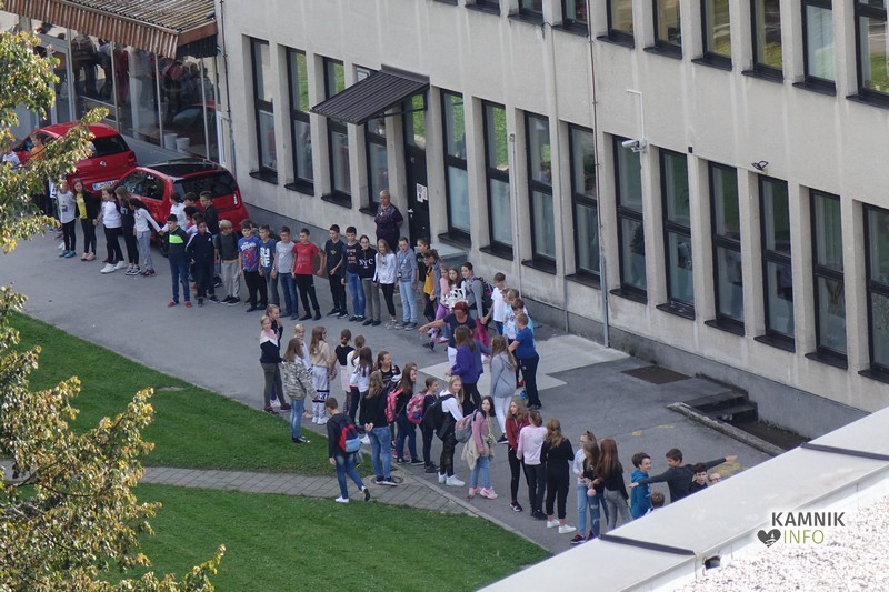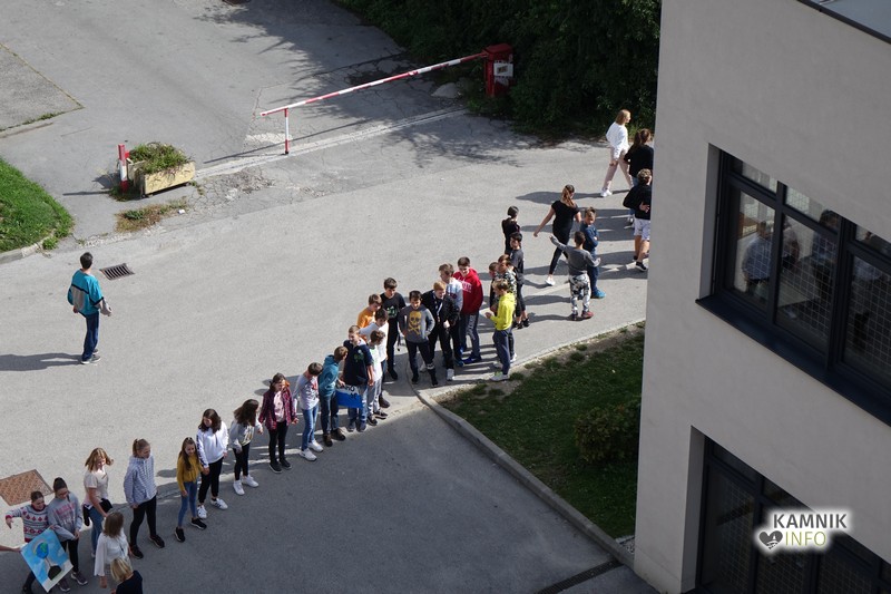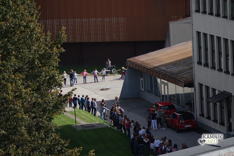 Šolarji so se, postavljeni okoli Toma Brejca in Frana Albrehta, prijeli za roke in s tem simbolično objeli šoli in naš planet, glasno so skandirali gesla, za nameček pa so izvedli “val”, ki je zavaloval okoli šol.