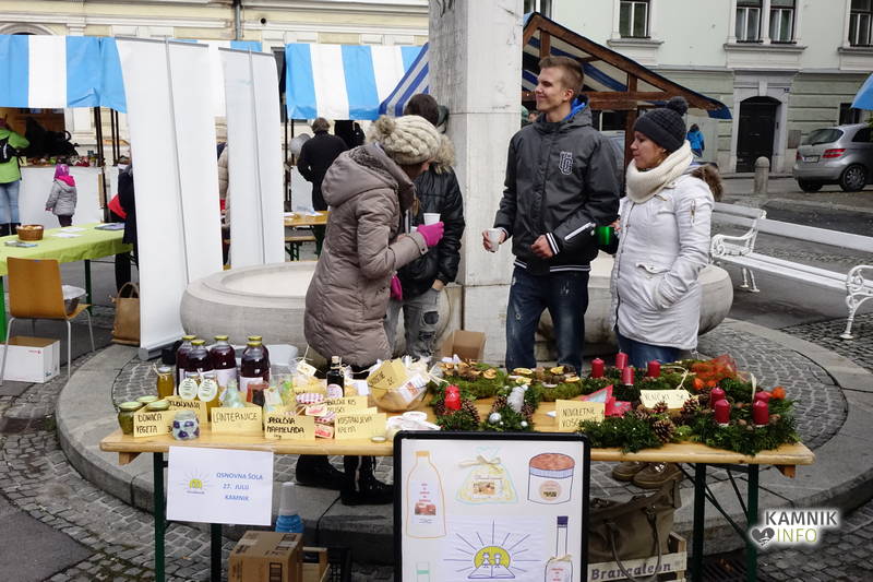 Tržnica je obiskovalcem ponudila pestro izbiro domačih, naravi prijazno pridelanih in izdelanih dobrot – od sezonske zelenjave in sadja, čebelarskih izdelkov, mesnin, mlečnih izdelkov, zelišč, pekovskih izdelkov ter slaščic in še kaj. Predstavili so se: Bio Iris – biološko dinamična kmetija pri Vodiškarju, Kmetija Pr’ Prajz, Kmetija Pr Kajet, Kmetija Pr’ Anžič, Domače mesnine Soud, Ivankini krofi, Zlata ptička, naravna kozmetika Moja narava, Ribogojnica Mihovc, Kmetija Pibernik, Kmetija Trebušak, Kmetija Pelicon iz Goriških Brd, Zelenjavni vrt Tina, Rokodelstvo Damjana Spruk, Meso Kamnik z mesarjem Antonom, Hiša slaščic Tarangela, lončarka Mojca Žalik, Hiška pisanih daril, rokodelka Marija Šmidovnik, Osnovna šola 27. Julij, rokodelka Doroteja Narat z adventnimi venčki, Reciklarnica, Zavod Grunt in Terme Snovik.