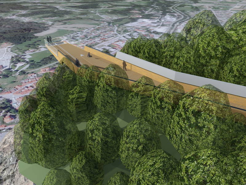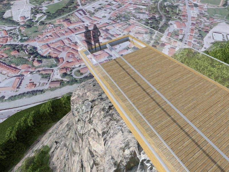 Ploščad, za katero so bila že pred časom pridobljena vsa potrebna dovoljenja, bo v skupni dolžini merila cca 50 metrov, bo izdelana iz hrastovega lesa, sama konstrukcija pa bo vpeta s kovinskimi stebrički vpeta na točkovne temelje, s katerimi bodo izenačene neravnine, pri čemer bo najvišja višina razgledne ploščadi, merjeno od temeljev do vrha ograje, znašala vsega 3,45 m.