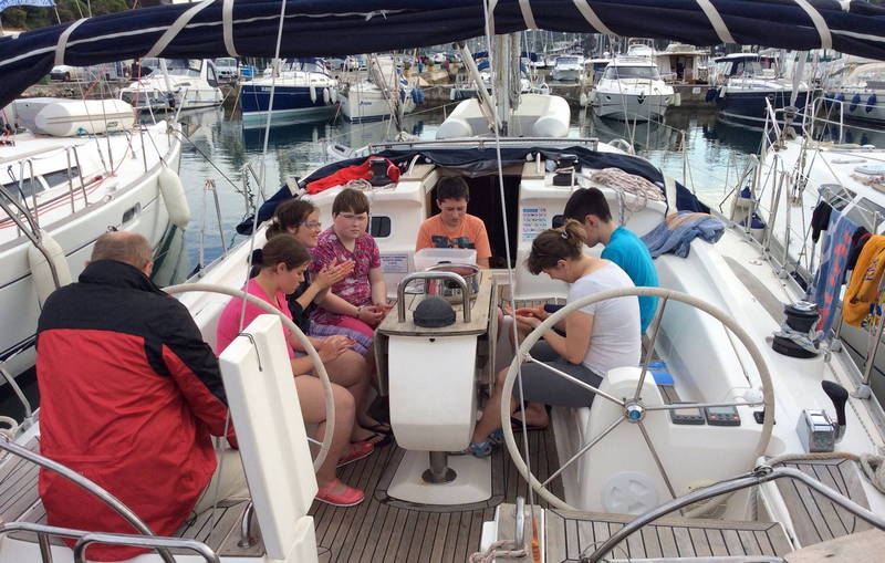 Kmalu po 10. uri so se v krasnem sončnem vremenu v marini zbrani vsi udeleženci letošnjega projekta. Na 13. pomolu se je zbralo 38 otrok s posebnimi potrebami, 13 pedagogov/spremljevalcev in 14 članov posadke. Sledilo je vkrcanje, razporeditev po kabinah in prvi zbor po jadrnicah, na katerem so skipperji dali udeležencem najpomembnejše napotke o jadrnici in plovbi.