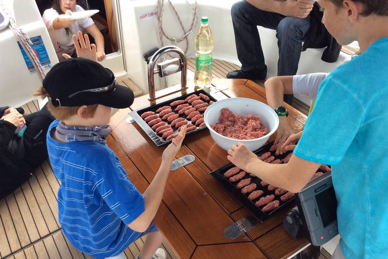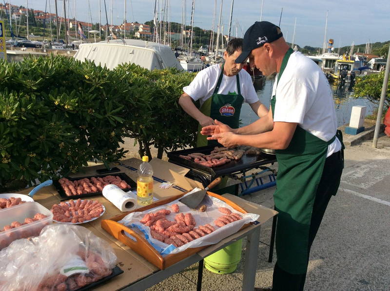 Malo pred šesto so se udeleženci letošnjega Jadranja za jutri že zasidrali v Verudi in priprave na skupno večerjo so se lahko začele. Ne ravno večerjo, ampak pravi žar piknik…