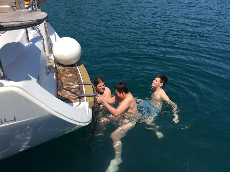 Ob 11.30 so jadrnice ena za drugo zaplule iz marine. Odpluli so proti odprtemu morju. Ko so zaplule v pravi veter je bil čas, da se razpnejo jadra. Po dobri uri jadranja so se jadrnice ena ob drugi zasidrale na skupnem privezu v bližnjem zalivu. Kopanje je bila čarobna beseda in skokov v morje ni in ni bilo konec. Sledili so jim veslači v gumenjakih in na supih, tako da so si vsi skupaj komaj utegnili vzeti čas za kosilo.