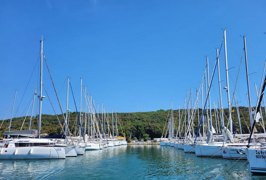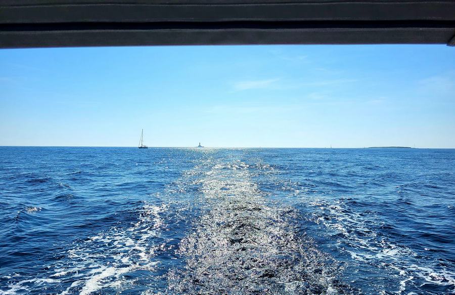 Takoj, ko se je zaključil prevzem jadrnic so v idealnem vremenu ena za drugo odplule na odprto morje in dvignile jadra. Sledilo je štiri ure plovbe mimo svetilnika Porer v smeri otoka Cres. Nekateri so se vmes ustavili za hiter skok v morje.