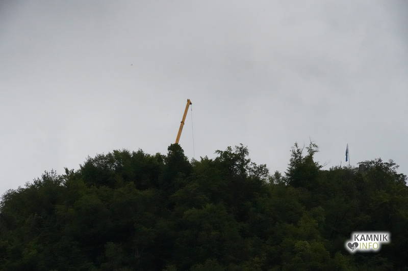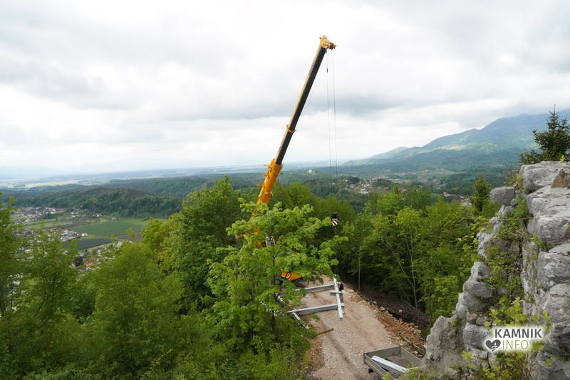 Že od daleč je bilo namreč visoko nad Starim gradom moč opaziti iztegnjeno roko avtodvigala, s pomočjo katerega so delavci začeli danes sestavljati nosilno kovinsko konstrukcijo, ki bo služila kot opora atraktivni leseni razgledni ploščadi.