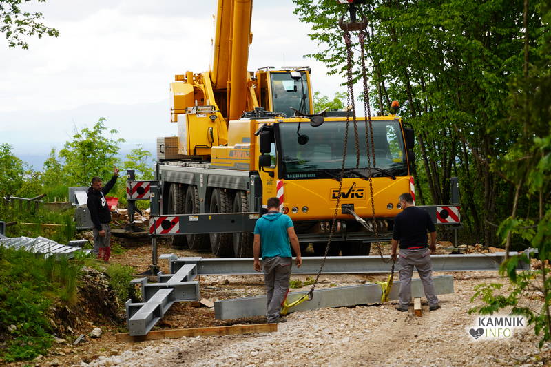 Kot sta nam povedala investitor razgledne ploščadi Stanislav Knez ter arhitekt Tomaž Schlegl, ki si je razgledno ploščad tudi zamislil, gre za drugo fazo postavljanja razgledne ploščadi, prva je bila dokončana s postavitvijo temeljev, tekom katere bodo delavci sestavili in postavili kovinsko ogrodje oz. nosilce, na katere bo nameščena ploščad iz lepljenega lesa.