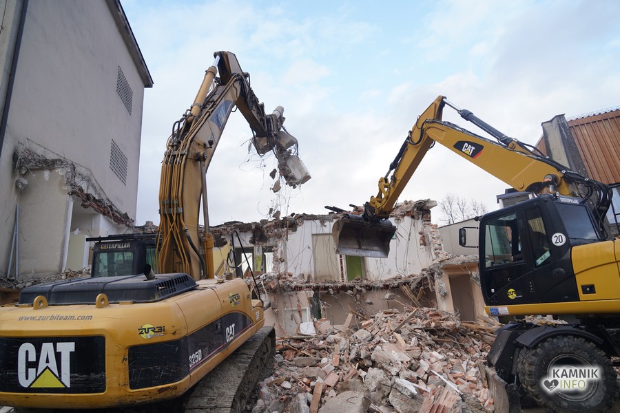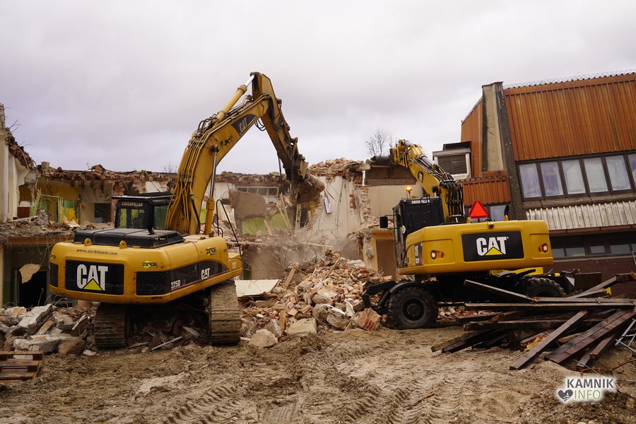 Današnja rušitvena dela, kot podizvajalec izbranega izvajalca, izvaja kamniško podjetje Žurbi Team, kot nam je povedal Roman Žurbi, direktor podjetja, ki v letošnjem letu praznuje 30-letnico delovanja, pa bo rušenje povezovalnega dela med šolo in športno dvorano končano predvidoma že danes oz. jutri.