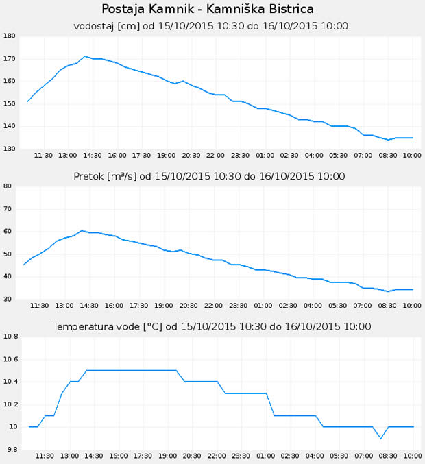 - Vodostaj reke Kamniške Bistrice v zadnjih 24-tih urah.
