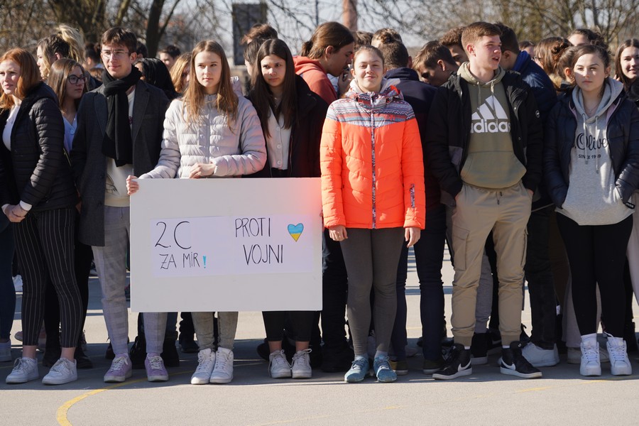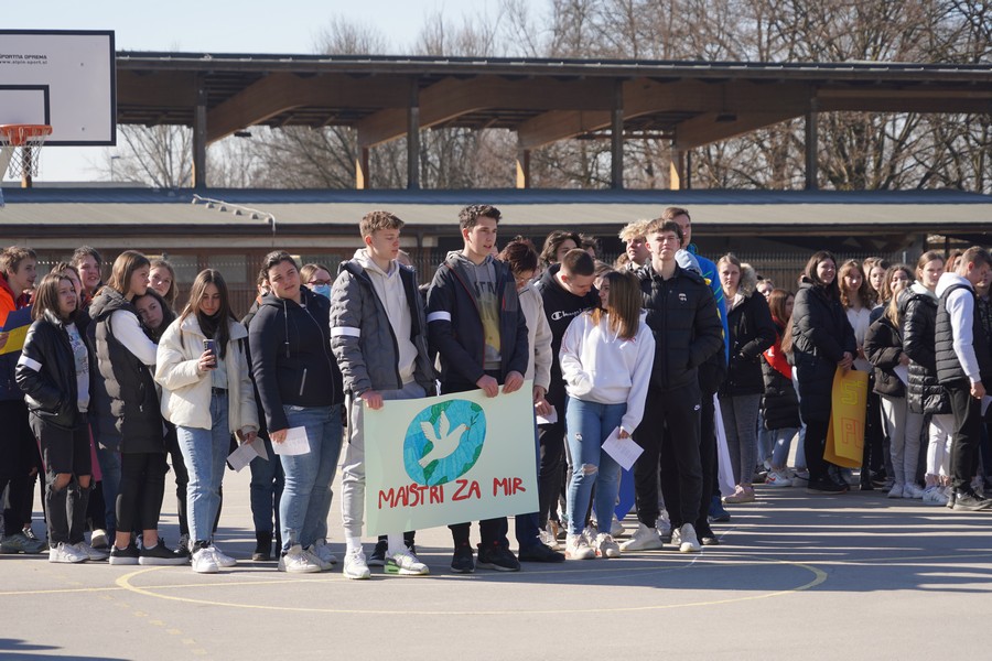 Na nedavne dogodke, ki temeljito pretresajo dojemanje in varljivo podobo sveta, kot smo ga vajeni ter ogrožajo evropski, če že ne kar svetovni mir, so se danes dopoldne, z organizacijo shoda za mir, ki so ga poimenovali Maistri za mir, odzvali tudi dijaki in profesorji osrednje kamniške srednješolske ustanove, ki je, po zanimivem naključju, poimenovana prav po generalu (in pesniku) Rudolfu Maistru.