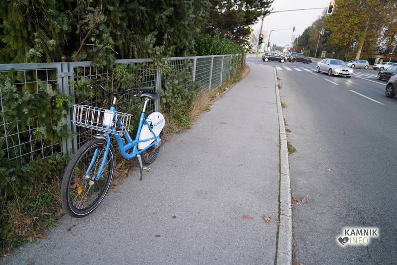 Na pločniku pri bencinskem servisu v Domžalah se že cel dan nahaja očitno zapuščeno kamniško Kamkolo, ki ga je tamkaj, odklenjenega in nezavarovanega, (za)pustil bržkone »nelegalen« uporabnik, ki si je kamniško kolo »izposodil« za pot v Domžale.