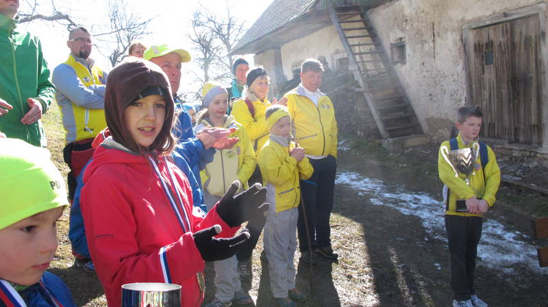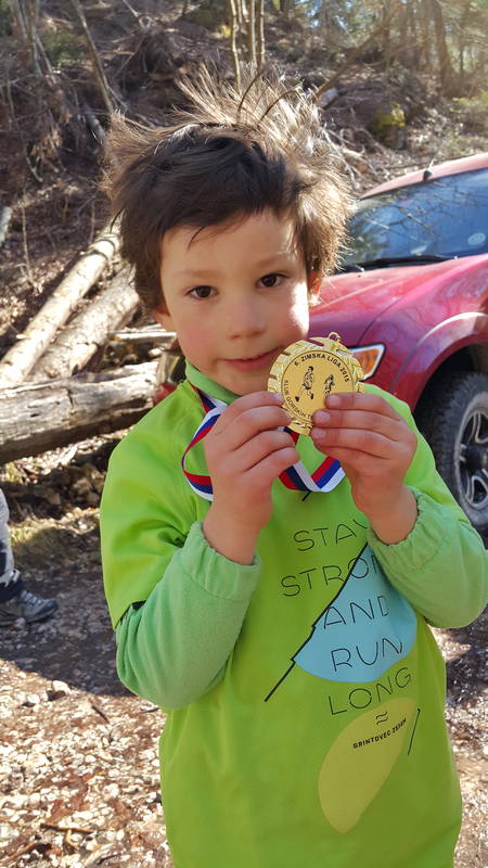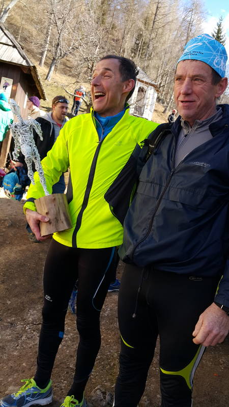 Miha Horvat in Joža Šerkezi, vama pa pokal za tekaško korenino in cici-polžka tekača. Miha, če bom v Vaših letih tako tekel kot Vi, bom najsrečnejši človek na svetu. Joža, “mulc” mali, tebi pa spodbuda, da boš sledil svojim starejšim kolegom kot sta Maj in Miha in da te čez nekaj let ne bom srečal v roza majčki ali pa s “čikom” v roki.