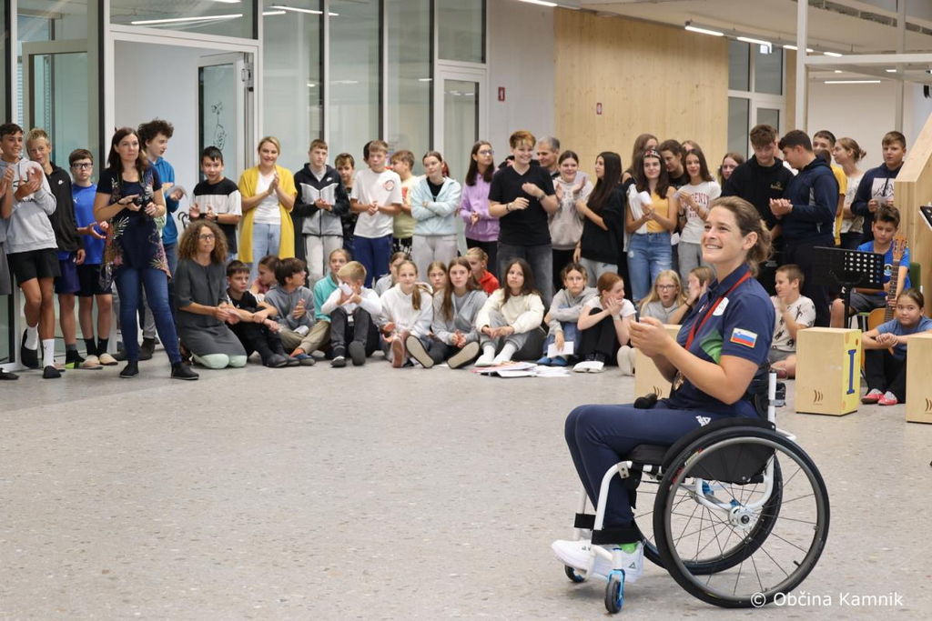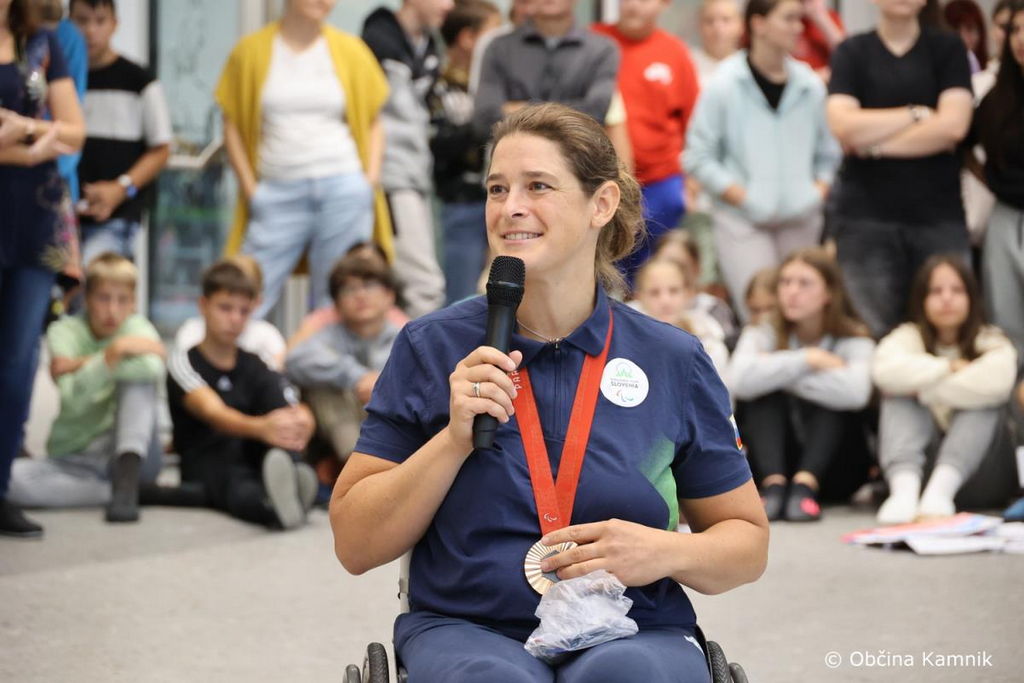 Parašportnico, ki je tudi sama nekoč obiskovala to šolo, so poleg otrok in zaposlenih pozdravili župan Matej Slapar, direktor Zavoda za turizem in šport Kamnik Luka Svetec, predsednik Športne zveze Kamnik Duško Papež, vodja športa na Zavodu za turizem in šport Kamnik Franci Kramar ter ravnateljica Osnovne šole Frana Albrehta Monika Glücks Donko.