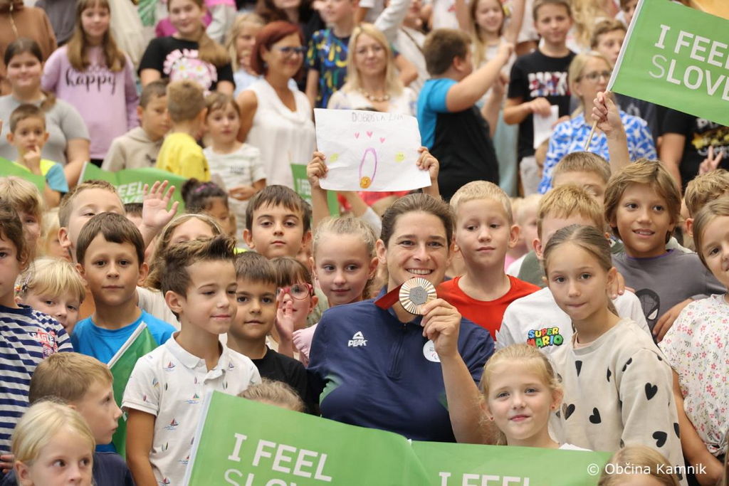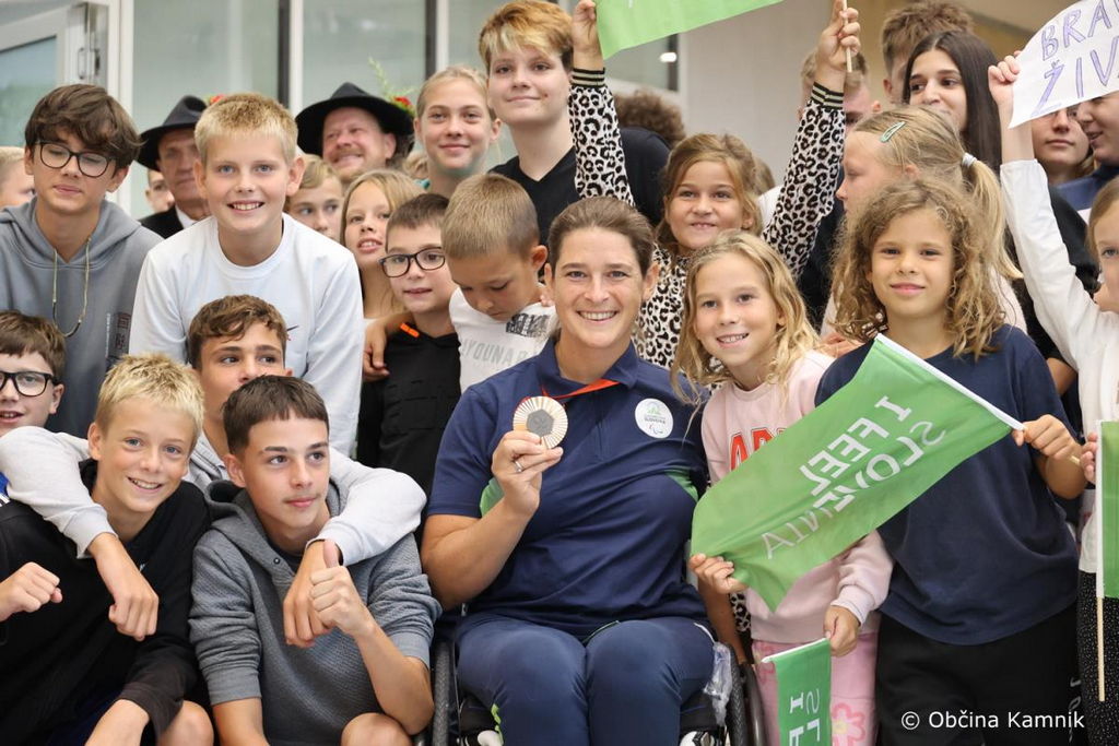 V rodnem Kamniku so na novi Osnovni šoli Frana Albrehta danes, 12. septembra 2024, za lokostrelko Živo Lavrinc, dobitnico bronastega odličja na ekipni tekmi na letošnjih paraolimpijskih igrah, pripravili prisrčen sprejem.
