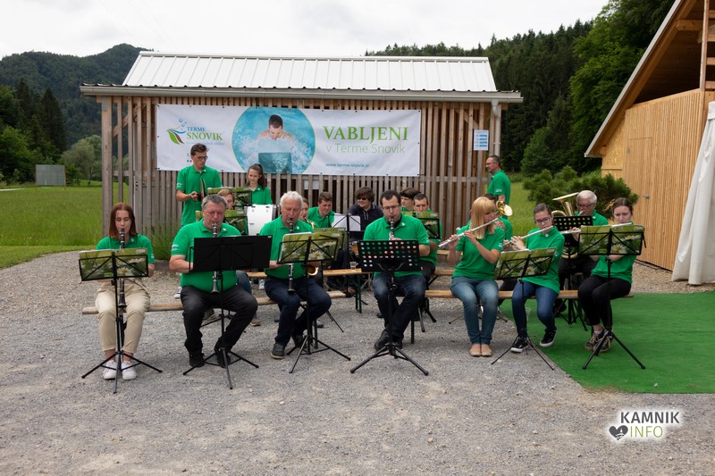 Je pa kopalce, ki so danes obiskali Terme Snovik, z veselimi vižami presenetila tudi godba Tuhinjske Doline, ki je odigrala nekaj pesmi in jim polepšala dan.