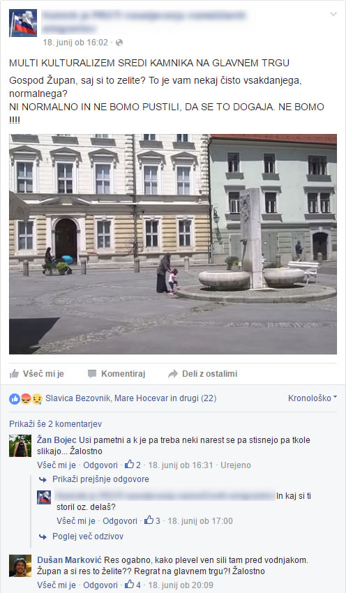 - Delček vsebine iz sovražno nastrojene FB skupine.