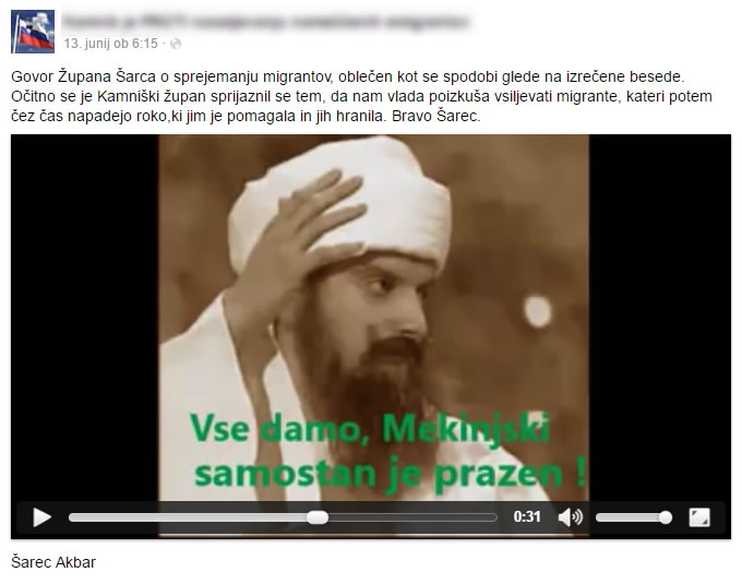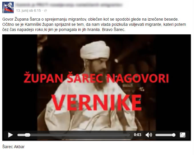 Za domnevno podkrepitev svojih natolcevanj je neznani avtor pri tem zmontirali iz konteksta vzete dele županovega govora, ki ga je župan, ob odprtju prenovljenega in na novo poslikanega podhoda, pred nedavnim imel na slovesnosti v OŠ Frana Albrehta ter video posnetka, v katerem je pred leti v satirični TV oddaji HriBar imitiral Osamo Bin Ladna, videokolaž pa je, za dobro mero, zabeljen še z zvoki vzklikov in streljanjem.